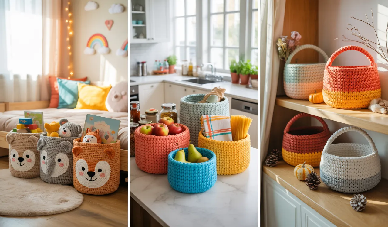 Colorful crochet storage baskets are a smart and beautiful way to keep your home neat. They add texture, warmth, and handmade charm while helping you organize everyday items. Many homeowners now use crochet baskets for living rooms, bedrooms, nurseries, bathrooms, and entryways because they are both useful and decorative. These baskets can hold toys, blankets, books, laundry, craft supplies, and more. They also fit many styles, from modern farmhouse to boho decor. If you want stylish home organization on a budget, these colorful crochet storage basket ideas can inspire your next room update. Each idea below is practical, trendy, and easy to imagine in real homes.