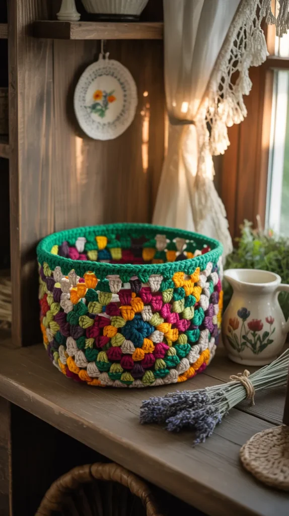 - 7. Granny Square Crochet Basket for Vintage Charm