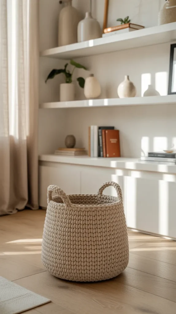 4. Minimalist Neutral Crochet Basket for Modern Homes