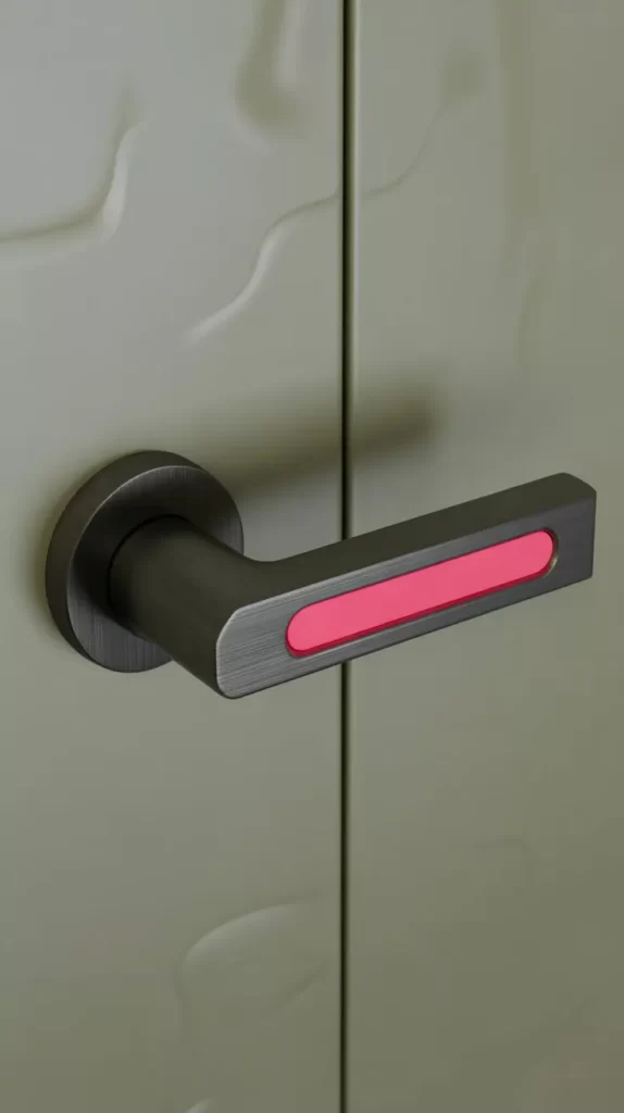 Handles designed with geometric patterns and multiple colors add boldness and personality. Triangles, squares, or abstract shapes in bright shades make doors stand out. Perfect for modern apartments or offices, these handles combine functionality with a statement-making decorative element.