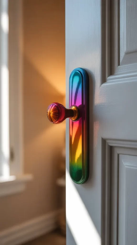 Door handles with a rainbow gradient create a fun, lively vibe. Ideal for kids’ rooms, creative studios, or playful spaces, these handles combine style and vibrancy. The gradual shift of colors catches the eye and adds a unique focal point to the door while maintaining a modern aesthetic.