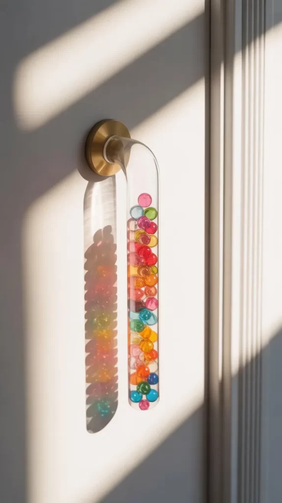 Handles made from clear tubes filled with colorful materials—like beads or threads—create a modern and whimsical look. These handles suit contemporary interiors and add a unique decorative element. They are eye-catching while remaining functional and trendy.