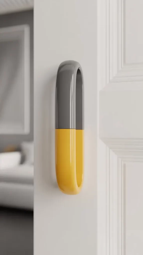 Two-tone handles feature a mix of neutral and bright colors, such as gray with yellow or white with teal. These modern handles enhance doors with a trendy yet subtle style. They are perfect for bedrooms, bathrooms, or office doors, offering a clean aesthetic with a playful twist.