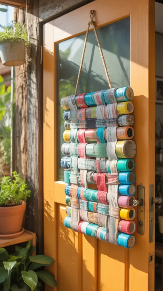 Recycled door hangings made from old fabric, paper, or beads are eco-friendly and creative. Bright paint and thoughtful design turn simple materials into beautiful decor.