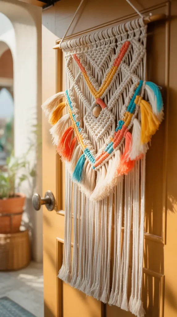 Macramé door hangings are popular for their soft and handmade look. When combined with colorful threads or beads, they feel warm and modern at the same time.
