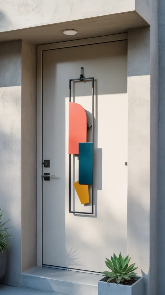 Metal door hangings with simple shapes and colorful paint give a modern and clean look. They are durable and stylish at the same time.