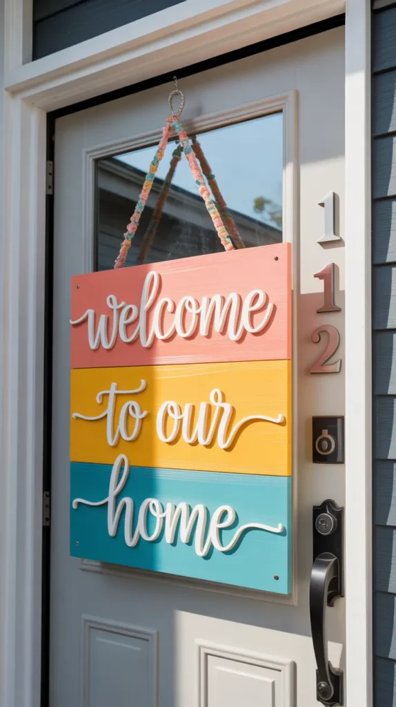 Personalized door hangings with family names or welcome messages feel special and inviting. Bright colors and creative fonts add charm.