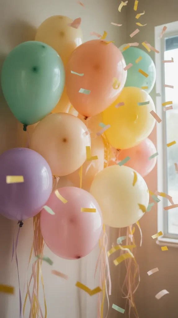 Finish strong with clear confetti balloons mixed with pastels. This adds sparkle without extra decorations.