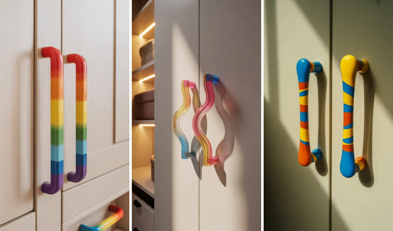 Your wardrobe is more than just storage—it’s an integral part of your bedroom or dressing area. Often, the smallest details, like door handles, can dramatically change the look and feel of your closet. Modern, colorful wardrobe door handles do more than just open doors—they enhance your space, reflect your personality, and bring a sense of style and vibrancy to your room. From subtle pastels to bold, geometric patterns, here are 15 ideas that can help you transform your closet into a trendy and eye-catching feature.