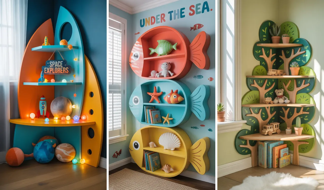 Corner shelves are a fantastic way to make a child’s room more playful, colorful, and organized. From rainbow designs to space-themed adventures, these 15 ideas show that storage can also be fun. Bright colors, interactive shapes, and creative designs make these corners a joyful part of every kid’s room.