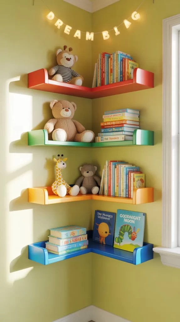 15 Playful & Bright Corner Shelf Decor for Kids’ Rooms