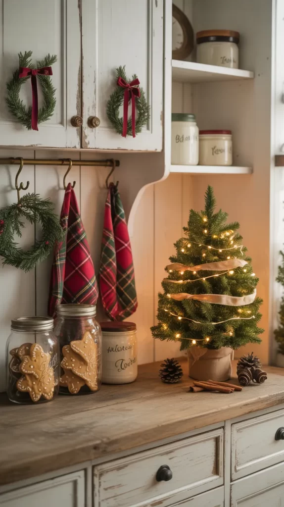 A few candles or a mini tree on the counter will make your kitchen feel festive and cozy for baking days.