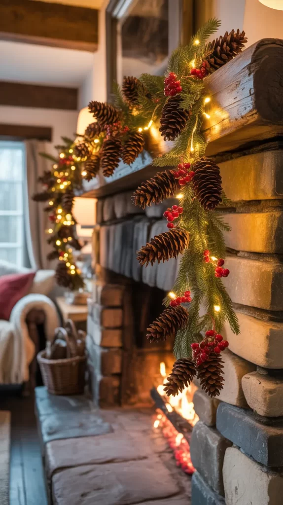 Garlands made of pinecones and twine add a natural touch to your holiday decor. Simply collect pinecones, attach them with twine, and hang the garland across mantels, mirrors, or stair railings.