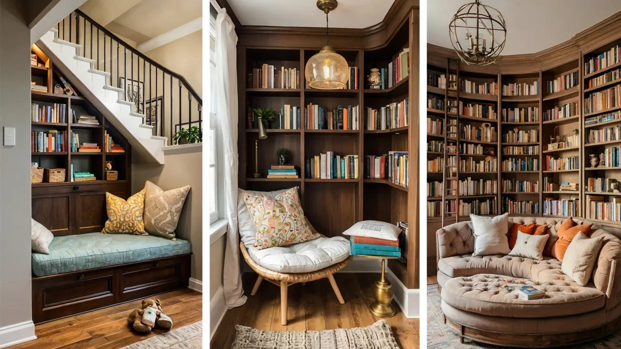 Don’t waste that under-stairs space—it’s a cozy home library waiting to happen.