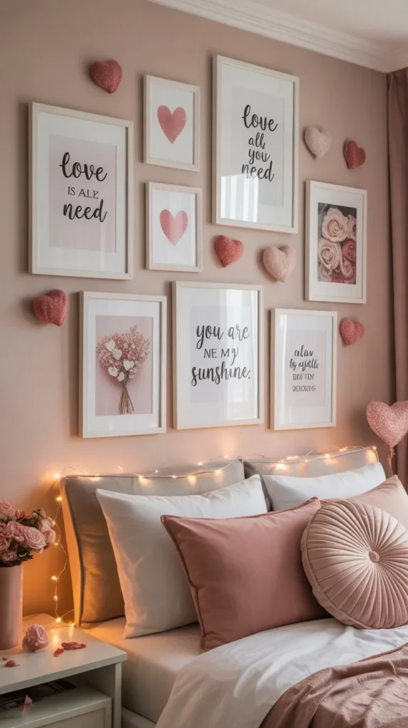 Wall art adds personality and romance without taking up space. Instead of buying expensive artwork, look for printable designs or affordable framed quotes with love-themed messages. This budget-friendly idea allows you to decorate thoughtfully while saving money.