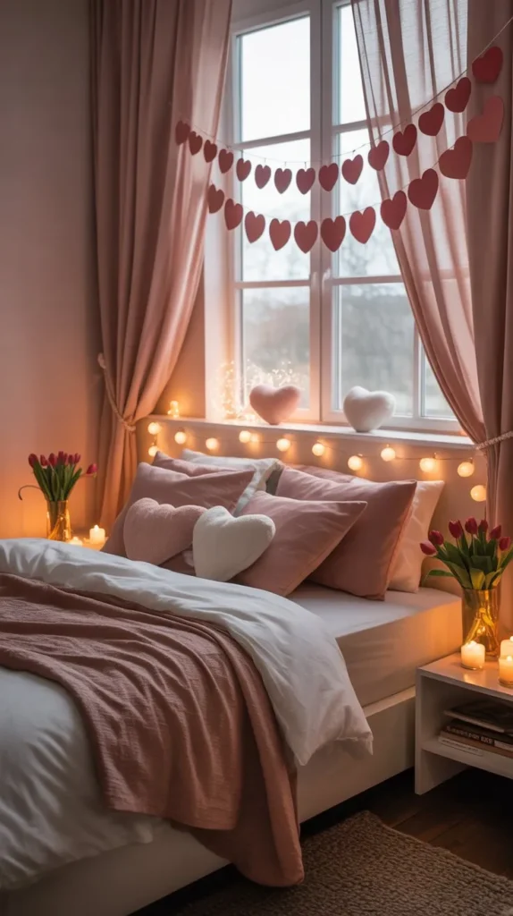 Choose neutral shades or soft reds to match the Valentine’s theme. This is a smart investment because good curtains also improve sleep quality by blocking light. Spending on functional décor like curtains offers long-term value for money.