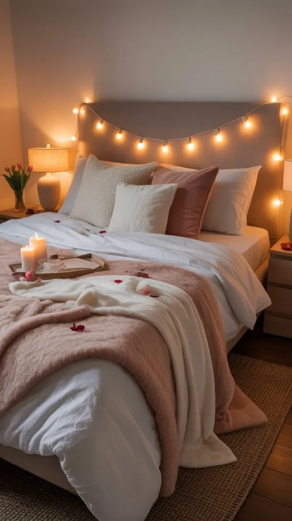 String lights are especially budget-friendly and reusable for other occasions. Place them around the headboard or along a wall for soft glow lighting. Battery-operated options save energy and are easy to install. Choosing lighting that works year-round makes this a smart spending choice instead of a one-time Valentine’s purchase.