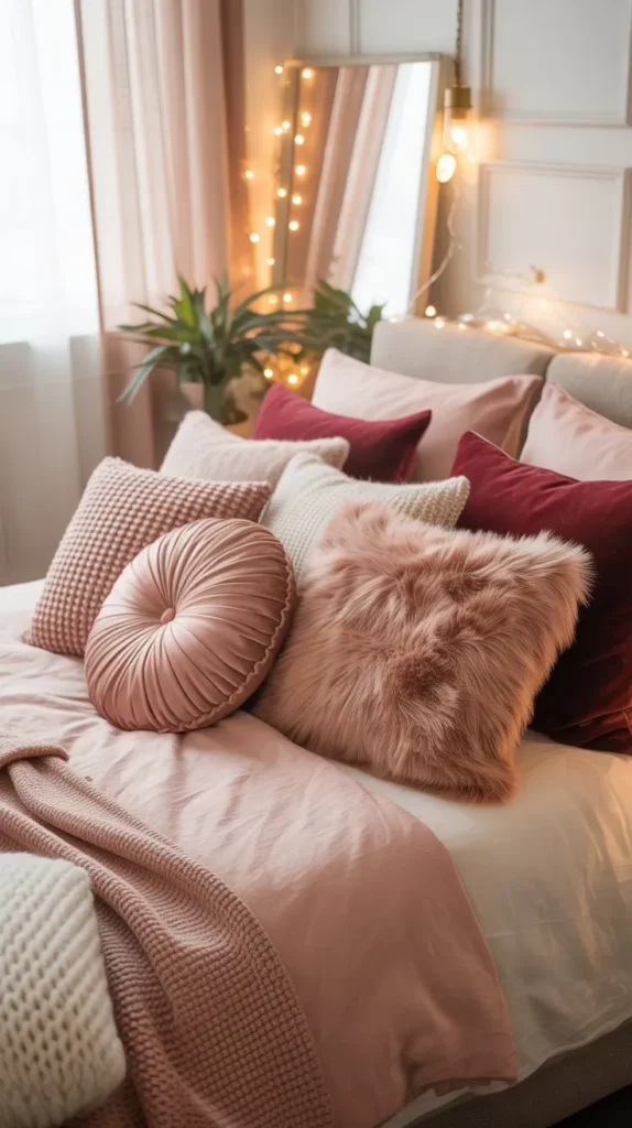 Choose soft fabrics and romantic colors like blush or cream. Pillow covers are a smart purchase because they take up less storage and last longer. This budget-friendly idea delivers style without a big investment.