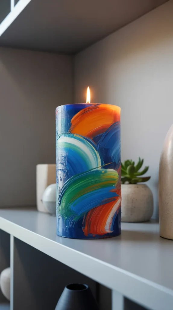 Abstract candles are also a cost-effective way to create statement decor. Because the design is freeform, you do not need advanced painting skills. This makes it a great project for beginners who want stylish home decorations.