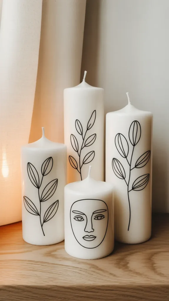 The best part of this DIY candle project is that it is simple and cost-effective. You only need one paint pen and a few candles to create a stylish display. A small collection of line art candles can transform a shelf or coffee table into a modern decorative space.
