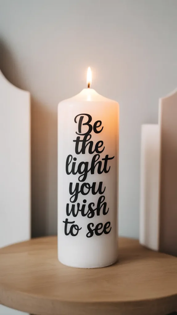 Typography candles feature hand-painted words or inspirational quotes. Simple phrases like โRelax,โ โPeace,โ or โHomeโ add a meaningful touch to decor.