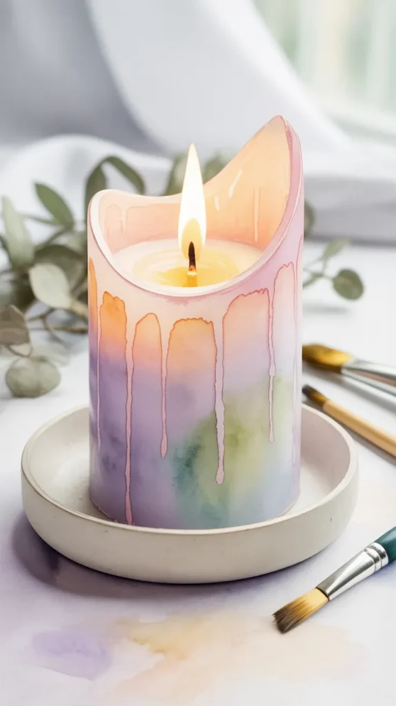 Watercolor candles are perfect for modern decor because they look elegant but remain simple to make. This technique is also affordable and beginner-friendly, making it a great DIY craft for home decoration.
