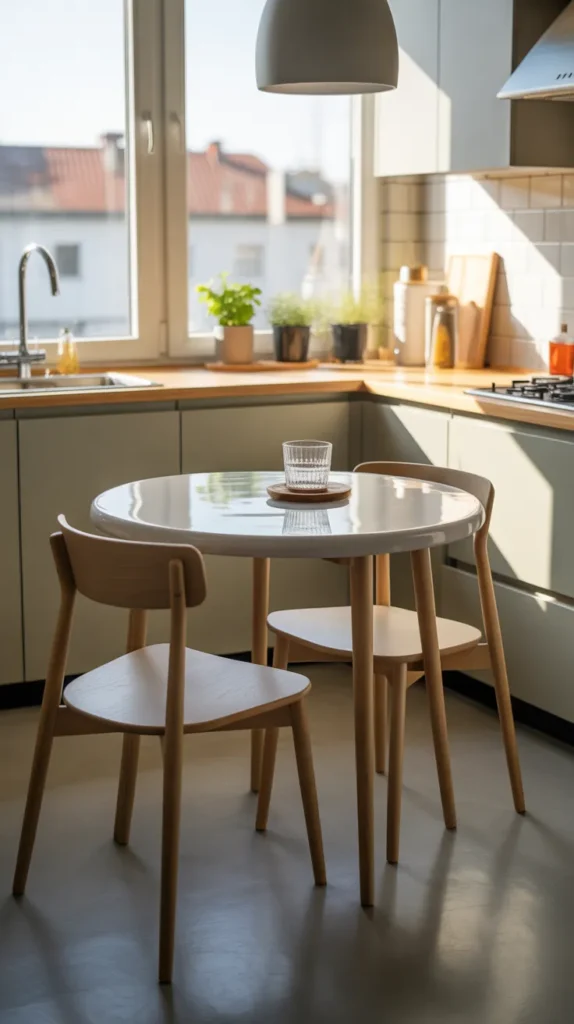 This design is practical and budget-friendly because smaller tables usually cost less than large dining sets. It creates a cozy place for coffee, meals, or work-from-home moments. It is ideal for smart space planning in compact homes.