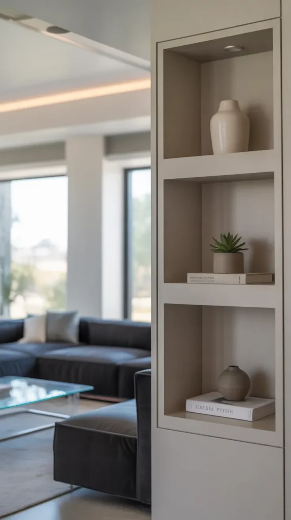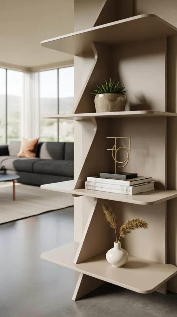 This style feels high-end but can be cost-effective when made from lightweight materials. It’s a smart way to turn a plain corner into a design feature without buying large furniture pieces.