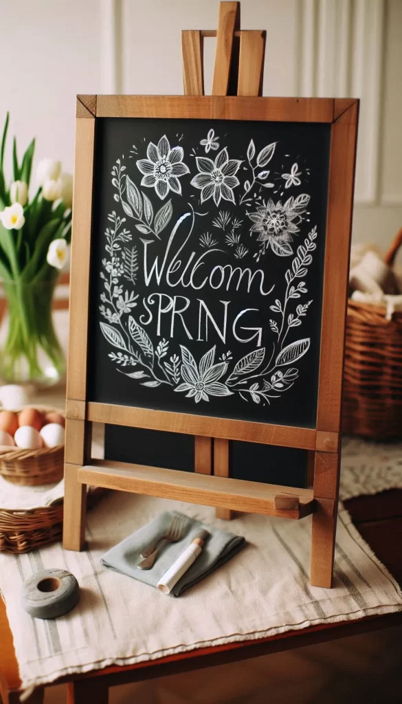 A chalkboard sign with a spring message is a great way to welcome guests into your home and celebrate the season.
