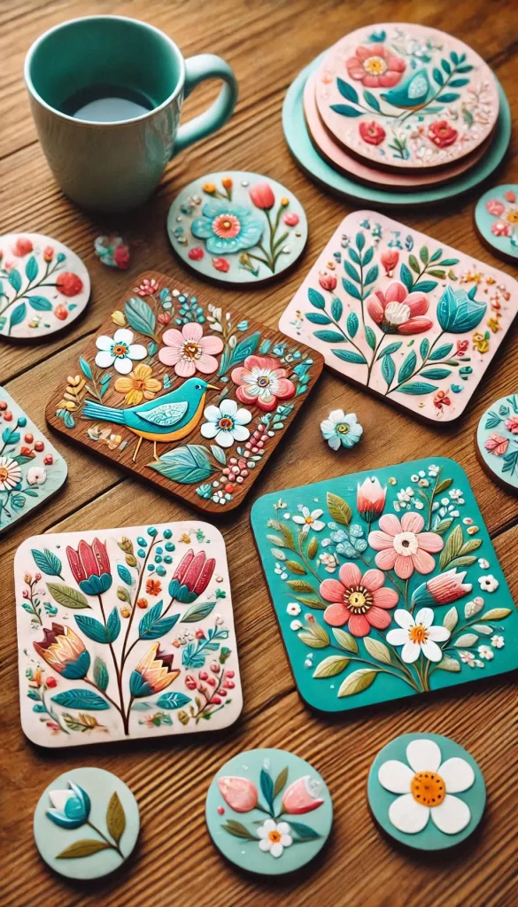 Personalize your coffee table with handmade spring coasters. These are simple to make and add a colorful touch to your living room or kitchen.