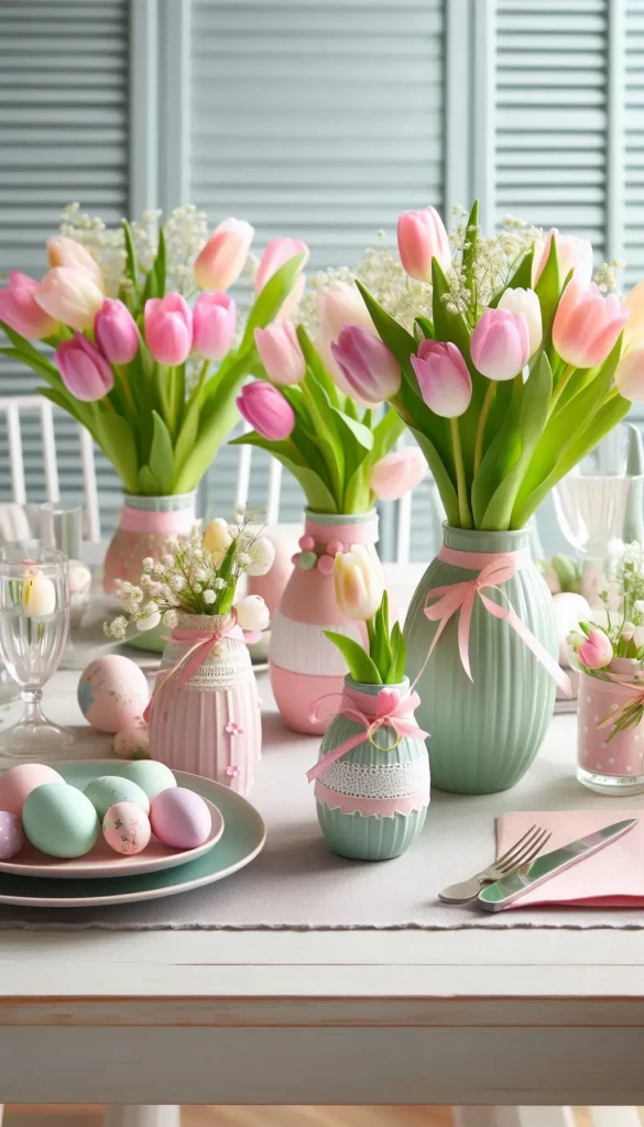 Transform ordinary vases into beautiful spring decor with a little paint or fabric. This simple project is a great way to add character to your home.