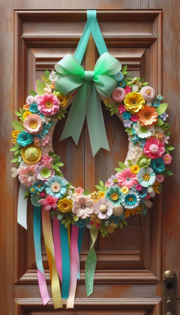 A colorful spring door hanger is a great way to add a welcoming touch to your home’s entrance.
