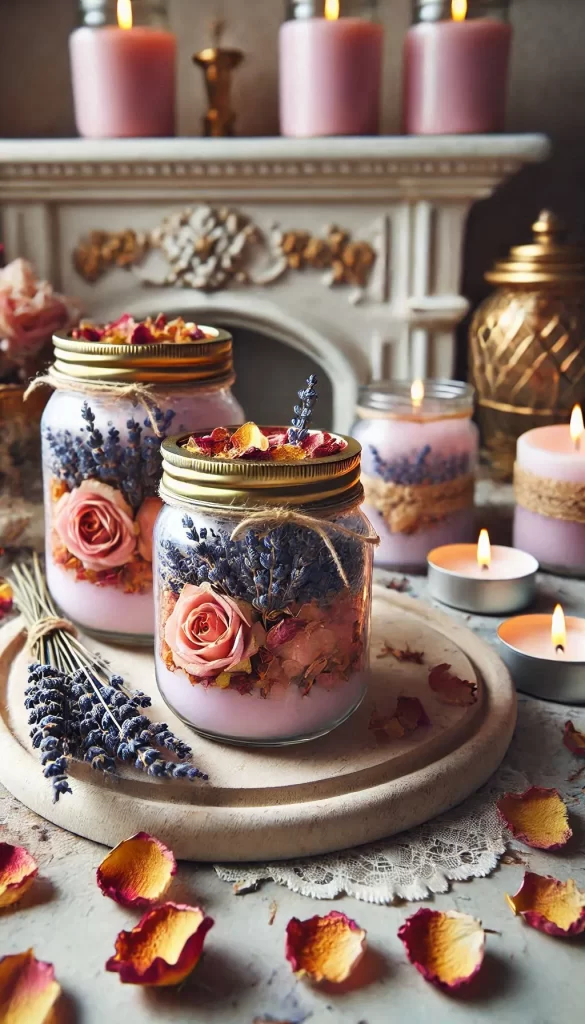 • For added decoration, add dried flowers or herbs to the wax before it sets.