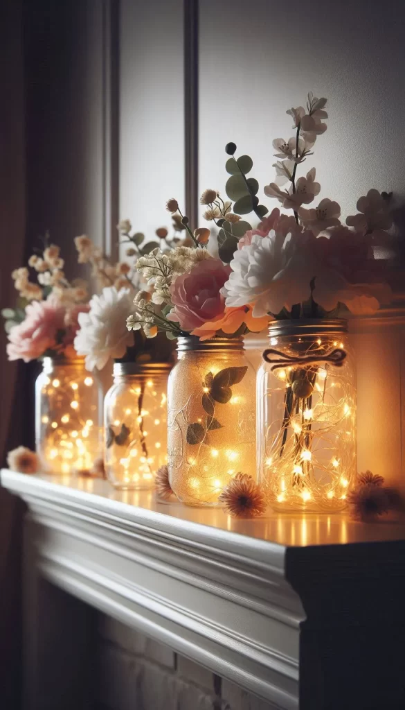 Create a magical ambiance in your home by turning mason jars into spring-inspired fairy lights. These are perfect for adding a soft glow to your living room or bedroom.