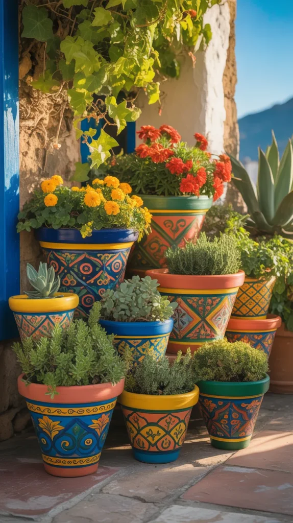 This is a smart purchase alternative to expensive planters. Terracotta pots are affordable, and painting them makes them unique. It is a cost-effective way to upgrade your home decor.