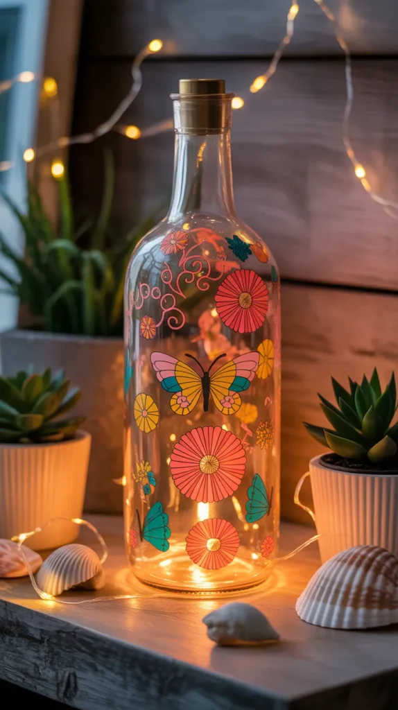 Turn old bottles into lamps by adding lights inside. Paint or decorate them to match your summer theme.