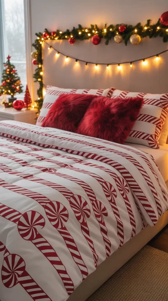 If you love bold, fun colors, candy cane stripes are perfect for you. Red and white striped sheets give your bed a festive, peppermint-sweet look. It’s bright, cheerful, and instantly brings out the Christmas spirit.