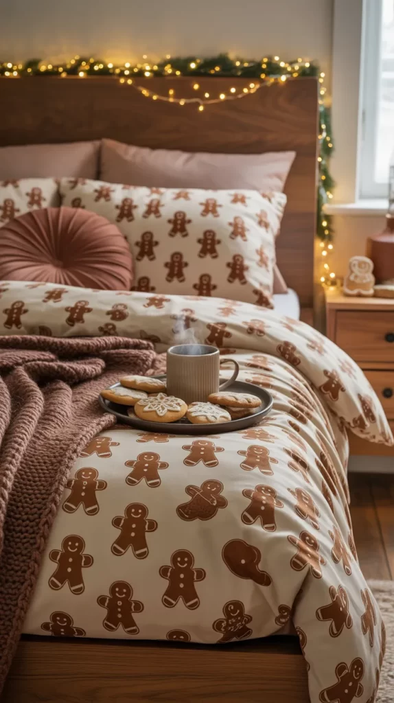 Sweeten up your space with gingerbread-themed bed sheets! Cute cookie prints add a whimsical, cozy feeling — perfect for baking season vibes.