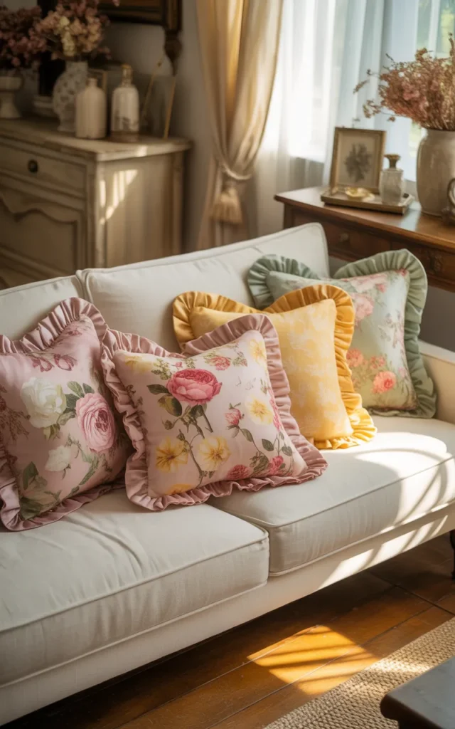 - 5. Floral Ruffle Pillows for Cottage Charm