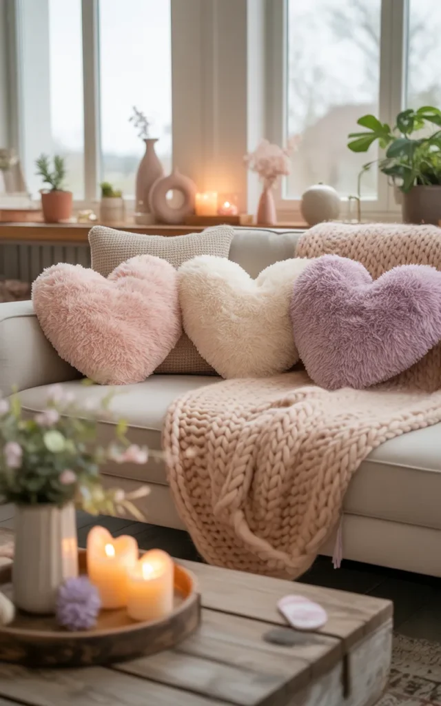 This is a smart purchase because one playful pillow can refresh a plain couch quickly. Heart pillows are often affordable and easy to mix with square cushions. Pair them with soft blankets and candles for a comfortable setup that feels stylish and welcoming.