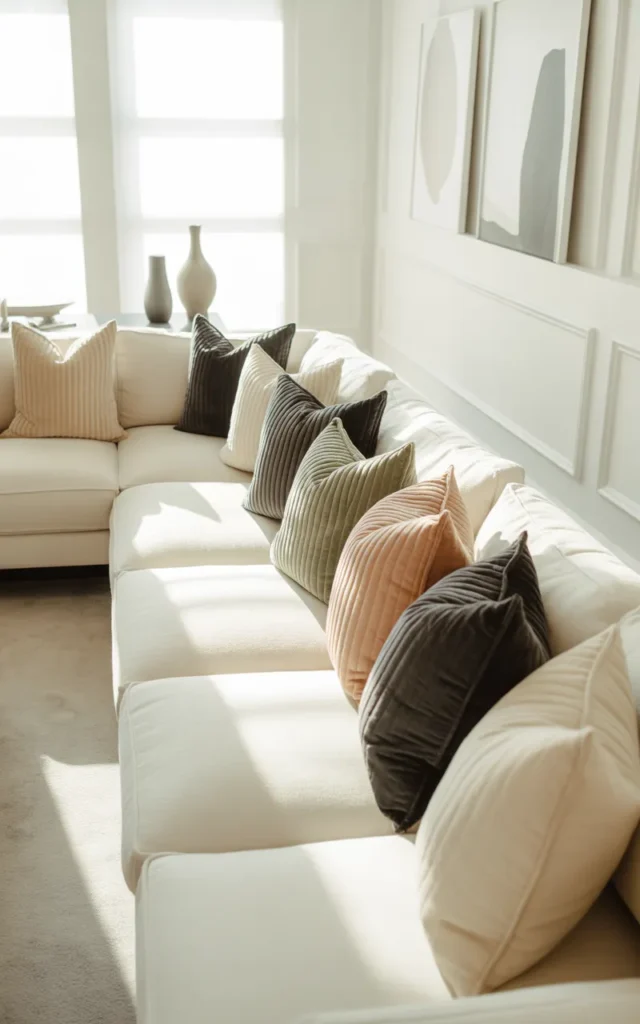 This is a smart and cost-effective way to decorate because you can buy pieces slowly over time. Start with two pillows, then add more as your budget allows. Layering gives your sofa a designer finish without overspending.