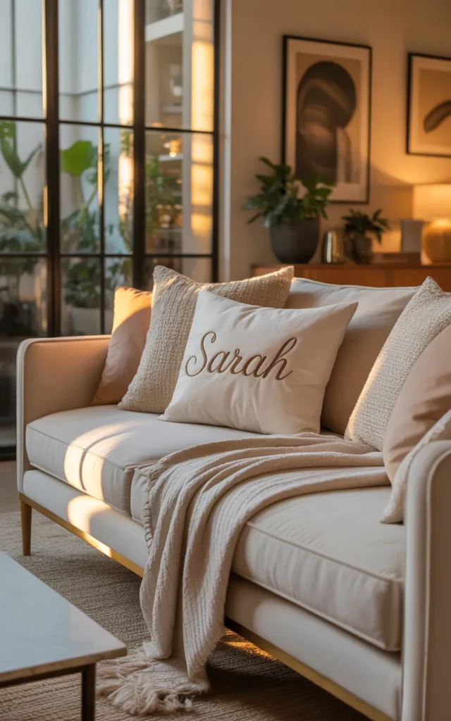 Personalized name throw pillows make your sofa feel special and unique. Add a family name, initials, or a short word like Home or Love. Choose simple fonts and soft colors for a modern look.