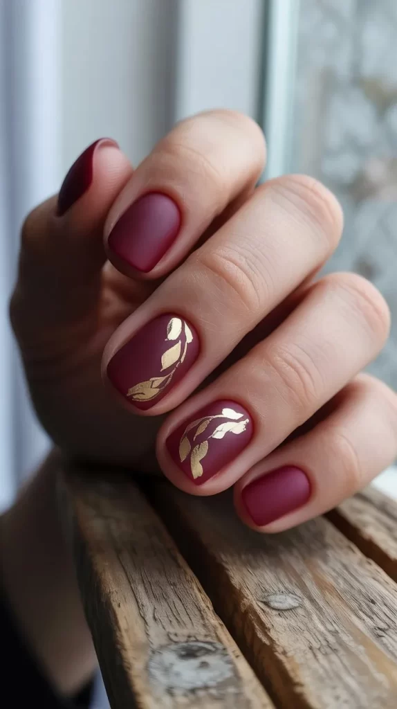 Classic fall burgundy paired with gold or bronze leaf stickers.