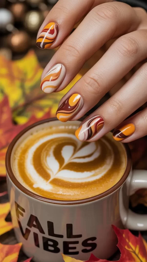 A dreamy mix of pumpkin orange, cream, and cinnamon brown in a marbled swirl pattern.