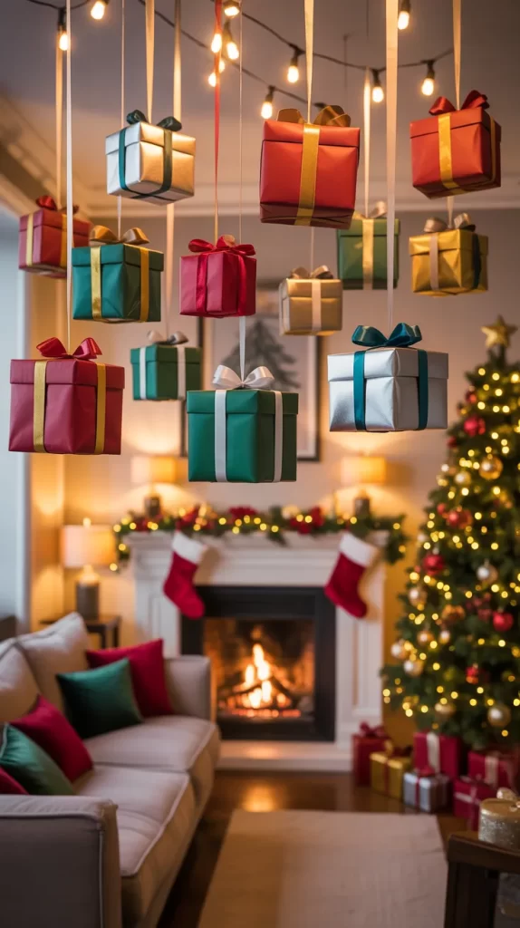 This illusion of “floating presents” creates a fun, whimsical Christmas vibe.