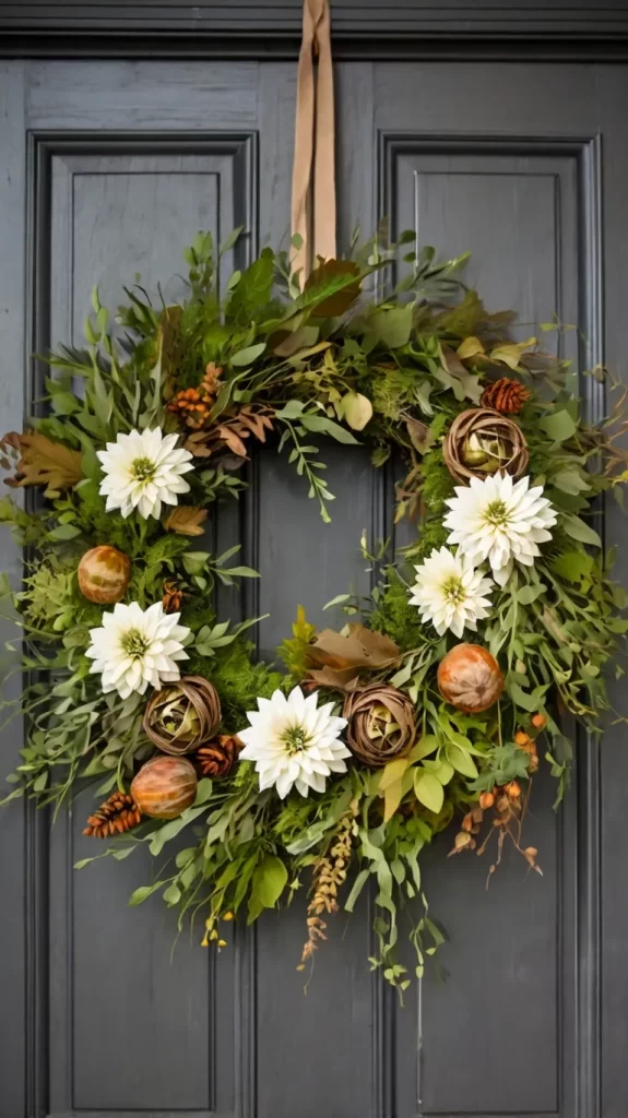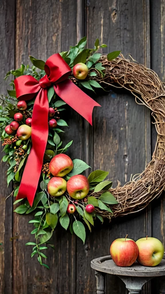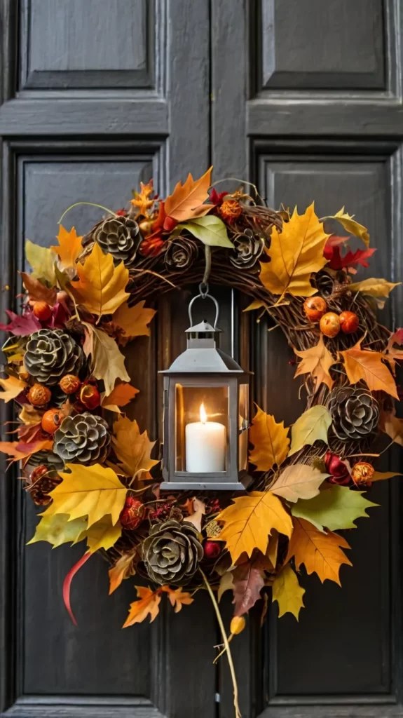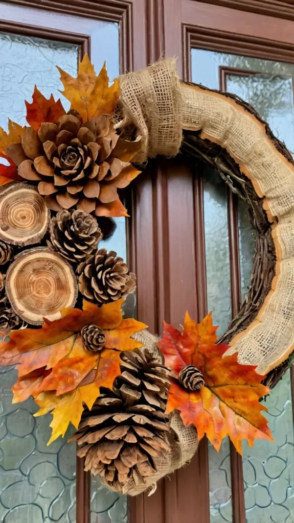 - Wrap a grapevine base with fall garland (maple leaves, greenery).