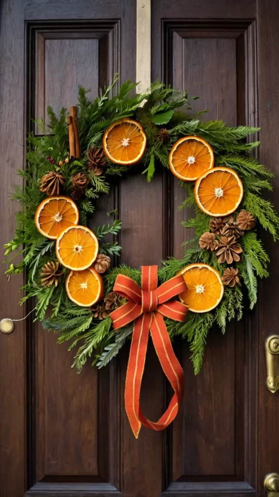 A fragrant and festive wreath using dried citrus slices and cinnamon sticks for a cozy, farmhouse aesthetic.