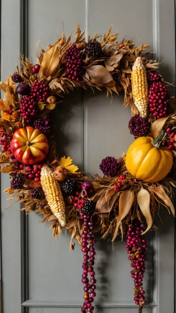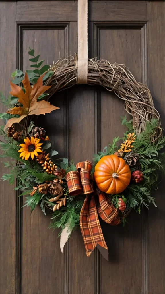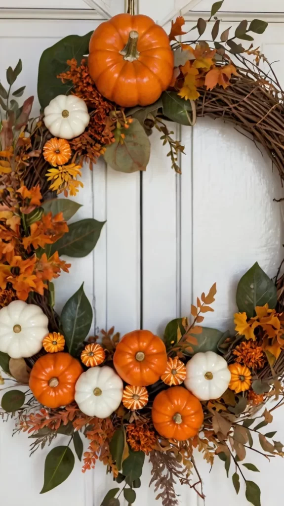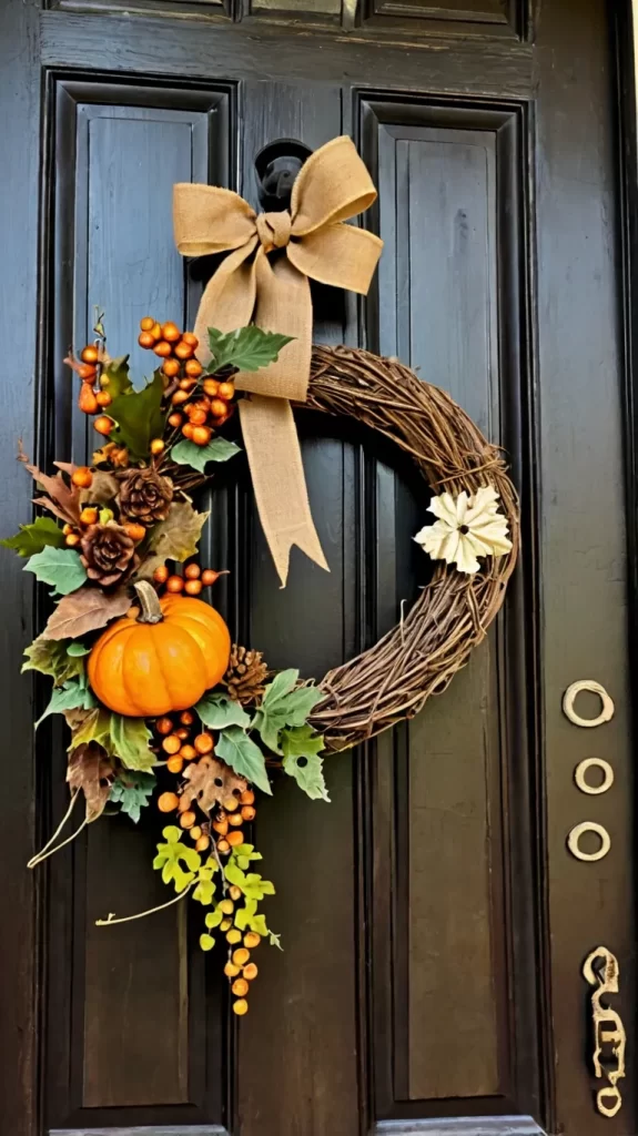 1. Rustic Grapevine Wreath with Mini Pumpkins