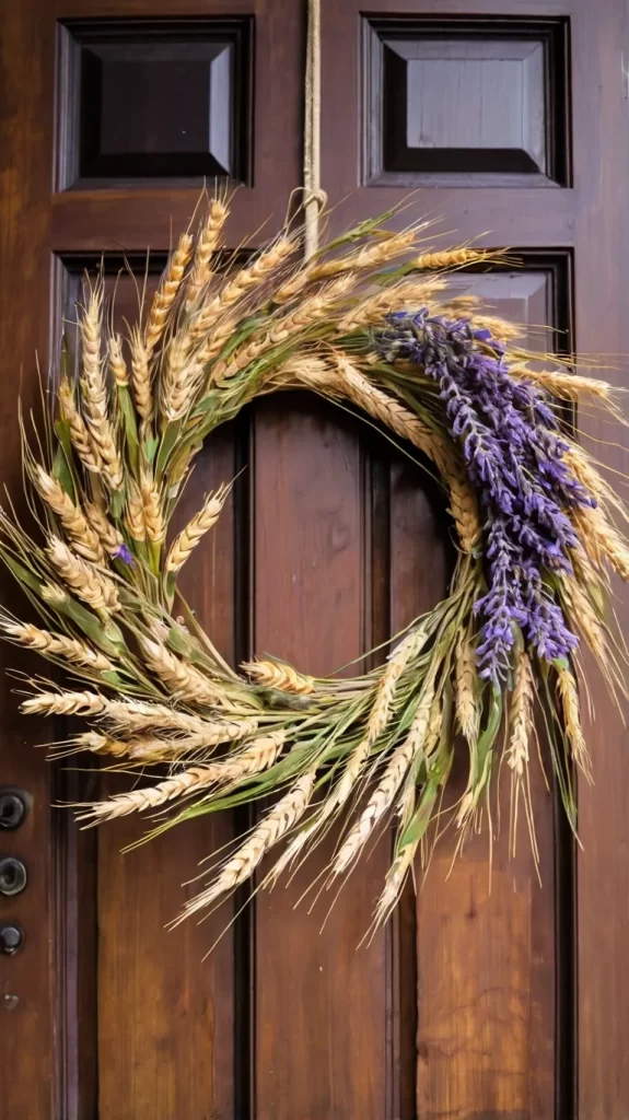 Perfect for a natural front porch look, this wreath uses real or faux dried wheat and lavender.