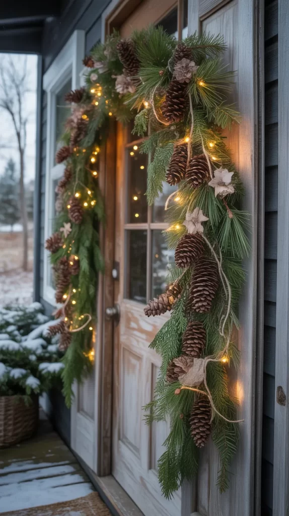 Tie the garland with burlap or plaid ribbons for a rustic finish. It’s an elegant way to make your entrance smell amazing and look picture-perfect.